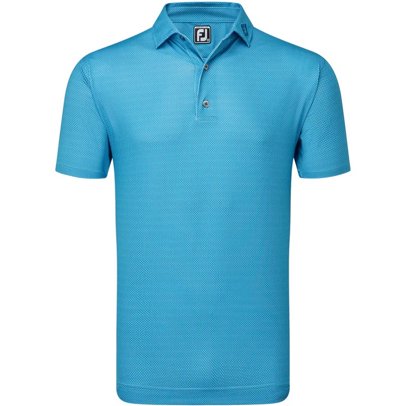 FootJoy Octagon Print Lisle Spread Collar Golf Polo – Blue Sky/Ocean/Deep Blue Features: