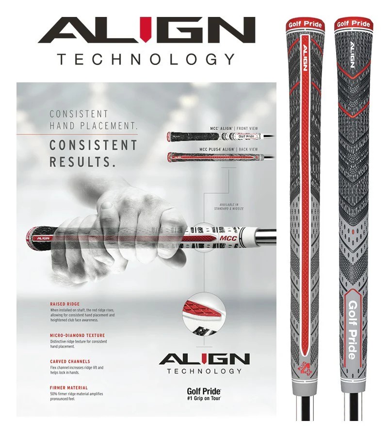 MCC Plus4 Align is designed for both hands and built for all conditions. With brushed cotton cord in the upper hand and performance rubber in the lower hand, it’s a hybrid grip that gives you top to bottom confidence. No matter the shot. Added ALIGN technology locks you in on every, single, shot. Our Raised Ridge Technology is made to give you more consistent hand placement, which means you can step into each shot with confidence thanks to a more square clubface at address and at the moment of impact.