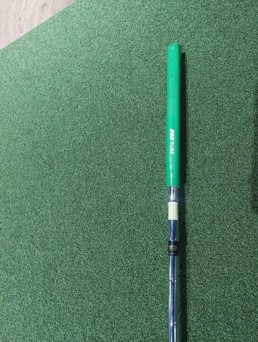 Play and bag marks, dings and scratches, some oxidation to the clubhead, a burn mark to the single bend of the shaft, but are in good condition. The length given is measured from the heel.